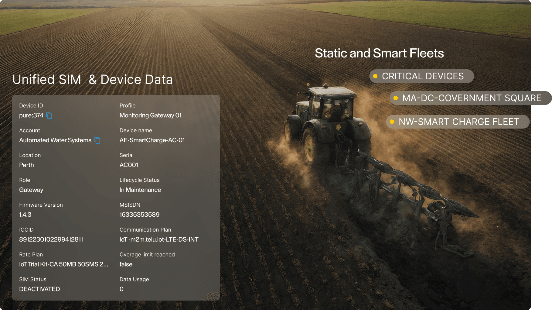 Natively integrates with TELUS Control Center and TELUS Global Connect, giving customers unified visibility and control across SIM status, device state, and fleet operations within a single operational layer.
